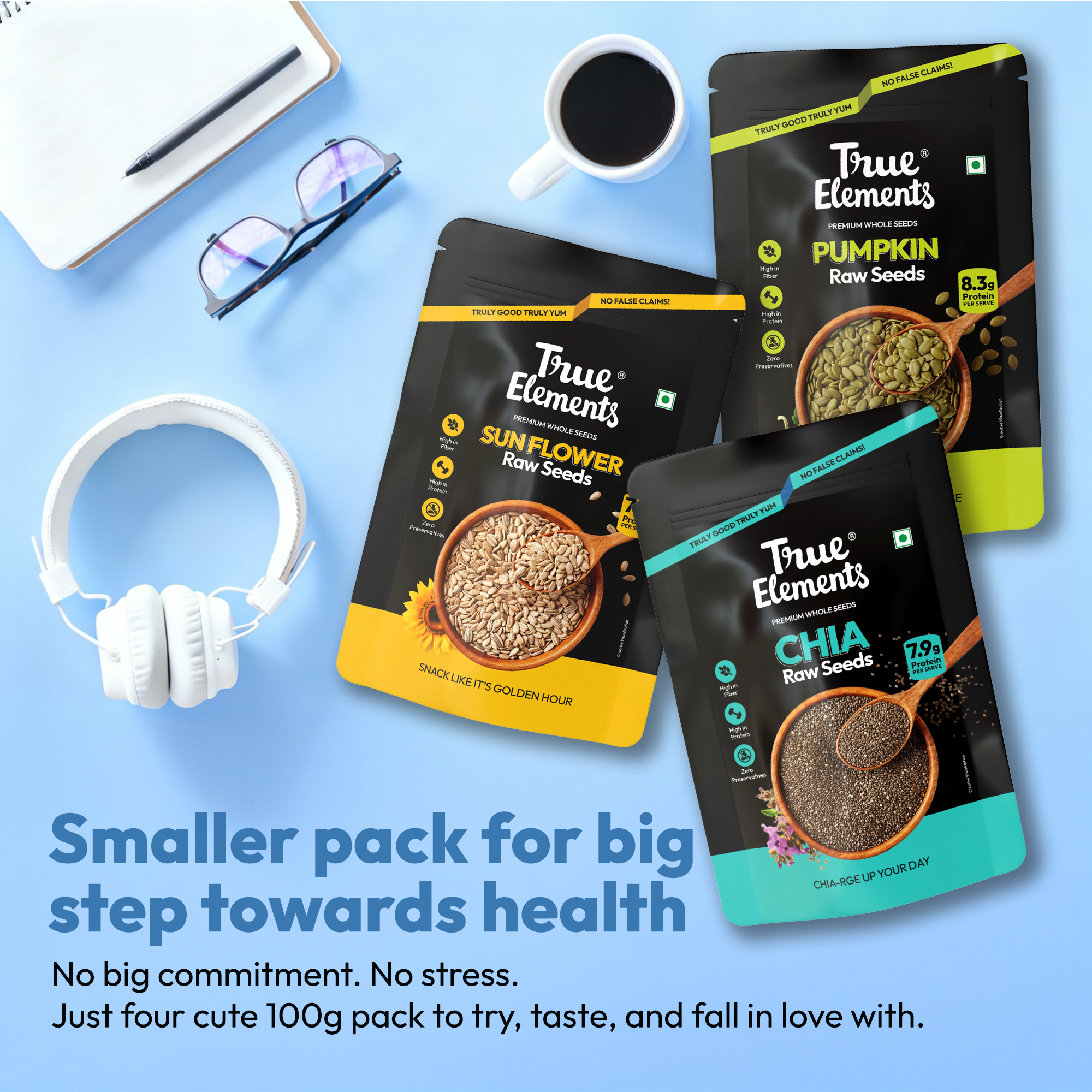 Meet the all-day nutrition squad- Chia, Sunflower, Pumpkin & Flax Seeds. Each seed brings its own flex- energy, glow, crunch, and calm- making sure your day stays balanced from start to finish. From your morning smoothie to your midnight snack, this combo fuels you with protein, fibre, and good fats- one handful at a time. Seed the Day, the Truly Good, Truly Yum way.